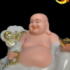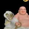 Tượng Phật Di Lặc Như Ý Bằng Bột Đá Trắng Ngồi Mây Núi Vàng