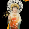 Tượng Quan Thế Âm Bồ Tát Đứng Lá Đề Bằng Bột Đá Sơn Viền Vàng