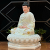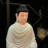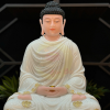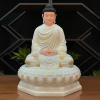 Tượng Thích Ca Tĩnh Tâm Đế Bát Giác Chất Liệu Bột Đá Trắng Viền Vàng Cao Cấp